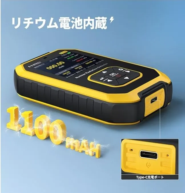 【持ち運び便利】充電式リチウム電池を内蔵しています。フル充電すれば、連続使用時間最大10時間で。Type-C対応のUSB給電ですのて、給電方法は様々。手のひらサイズで片手操作可能、収納や持ち運びの際に便利です。使いやすく操作が簡単で、家や現場での測定が便利です