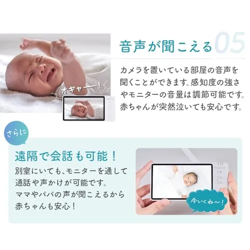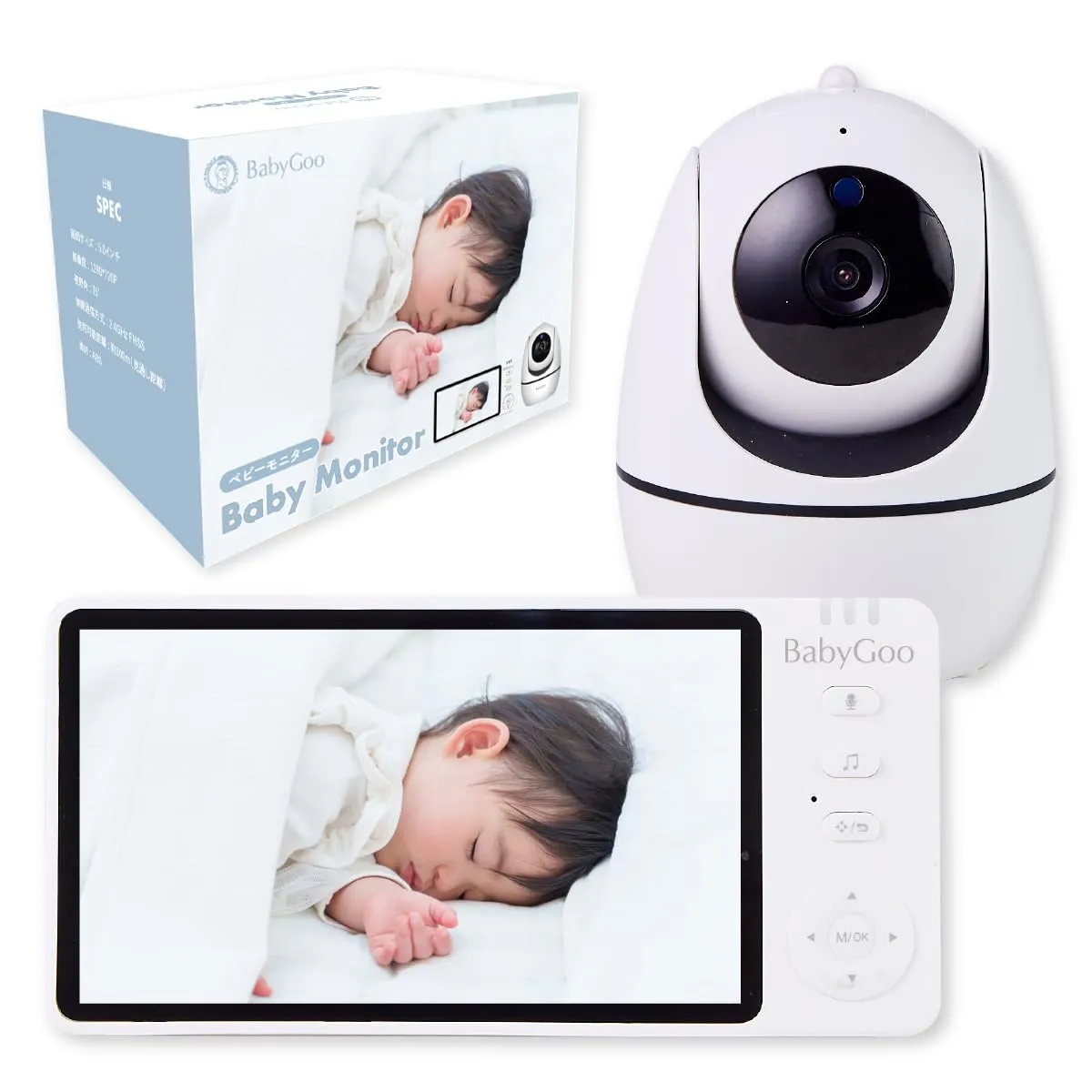 BabyGoo ベビーモニター 見守りカメラ wifi不要 5インチ大画面 ハイビジョン モニター付き 出産祝い ギフト プレゼント 赤ちゃん/