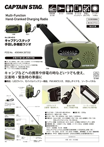 キャプテンスタッグ(CAPTAIN STAG) 防災ラジオ 多機能ラジオ 懐中電灯 LEDライト 【明るさ30ルーメン/連続点灯約30時間】 充電式 手回し充電 ソーラー充電 USB充電 IPX3 UW-4510/