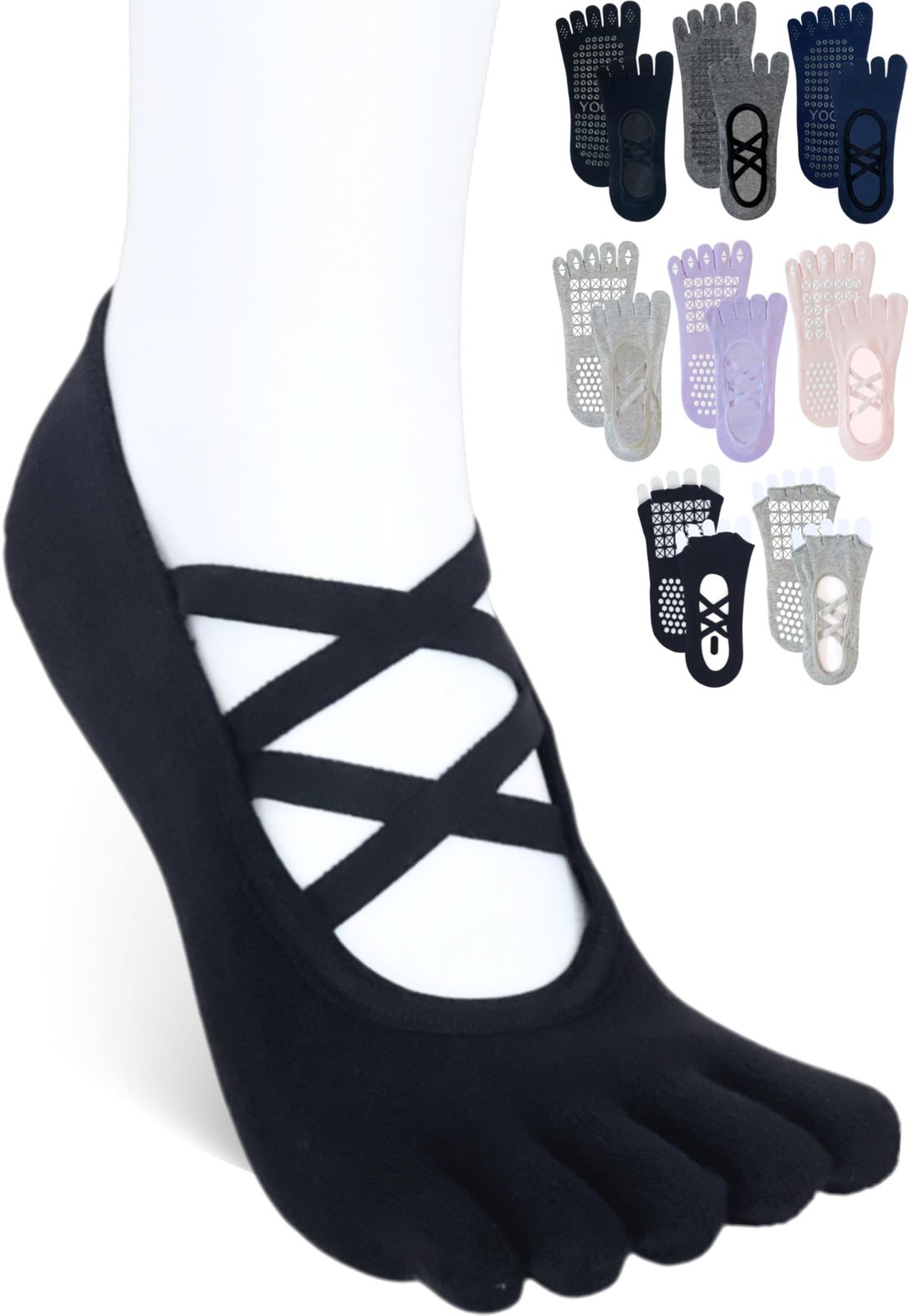 [Monlyu] ピラティス 靴下 ヨガソックス 5本指 滑り止め クロスバンド レディース ピラティスソックス ヨガ スポーツ ジム フィットネス グリップ ソックス 指あり 指なし つま先なし すべりどめ 抗菌防臭 くつした くつ下 吸湿性 通気性 速乾