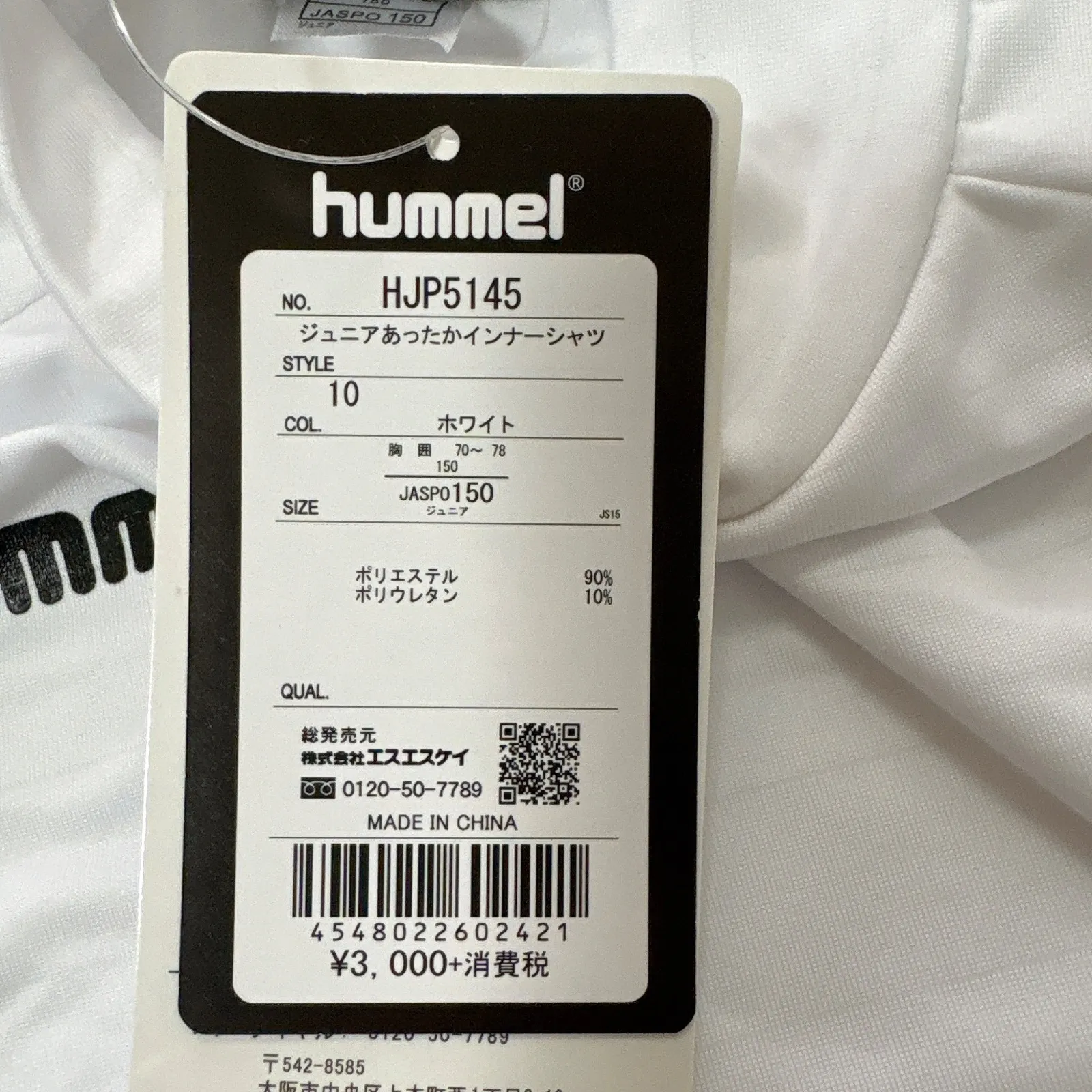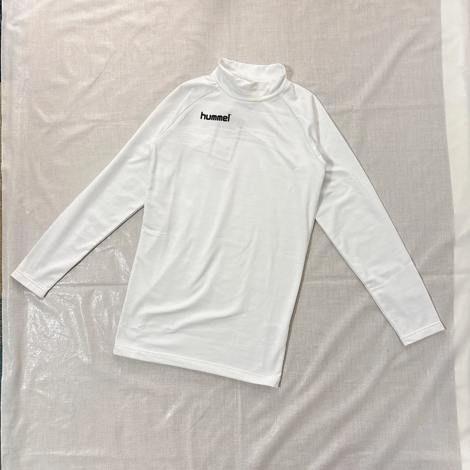新品 未使用 タグ付き 定価3,000円 hummel ヒュンメル 男の子 女の子 子供用 スポーツウェア ジュニア あったかインナー シャツ 150cm ホワイト 裏起毛 ハイネック ロゴ ライン 運動 スポーツ サッカー 練習着 アンダーシャツ 暖かい
