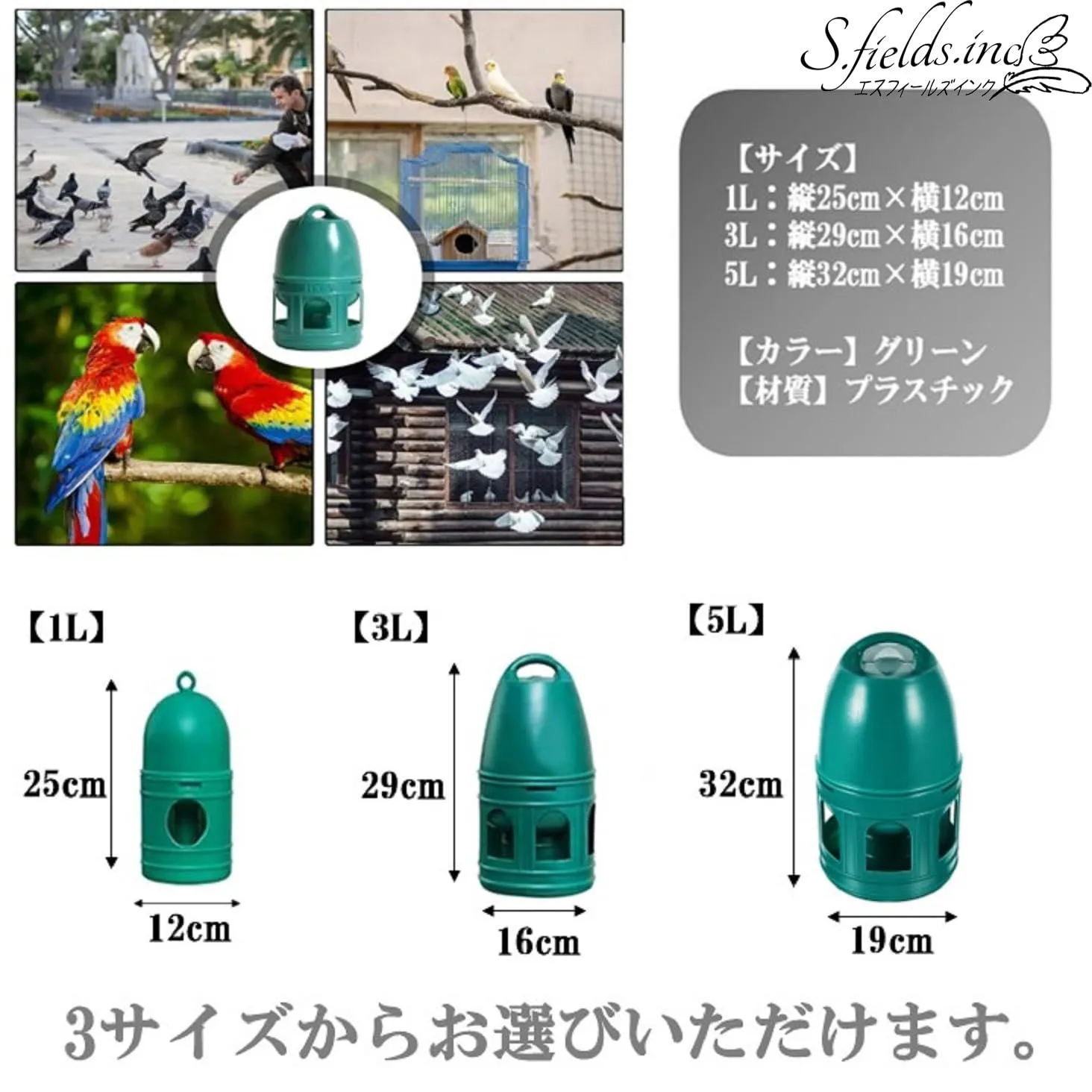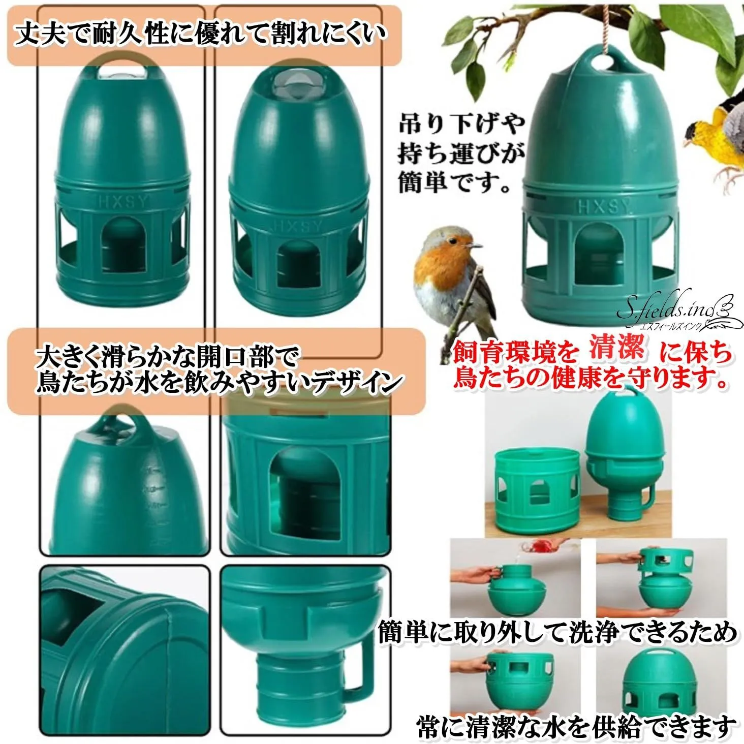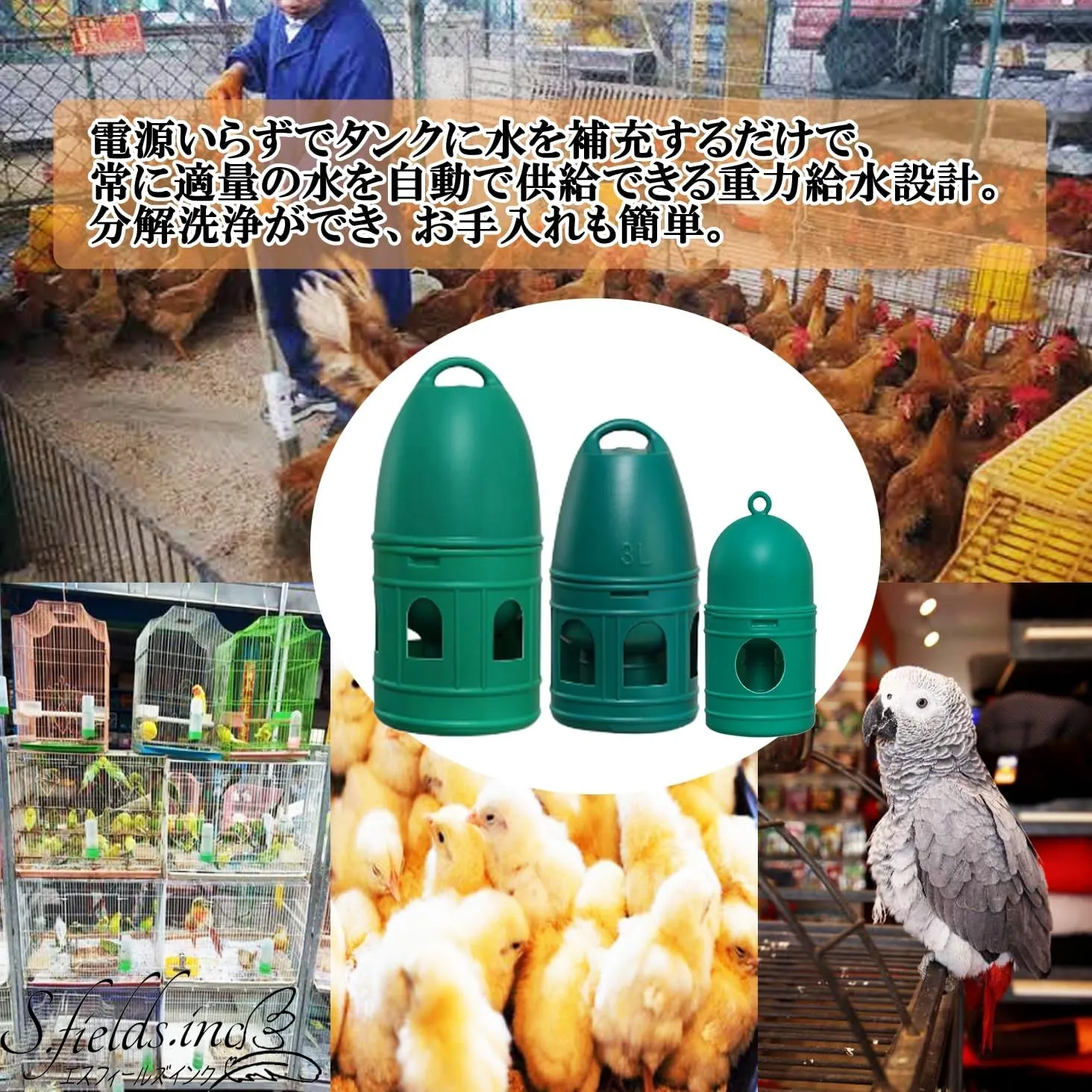 S.fields.inc 鳥給水器 鳥の水飲み器 水入れ 鶏 ひよこ 鳩 ニワトリ アヒル 家禽 家畜 プラスチック (5L)