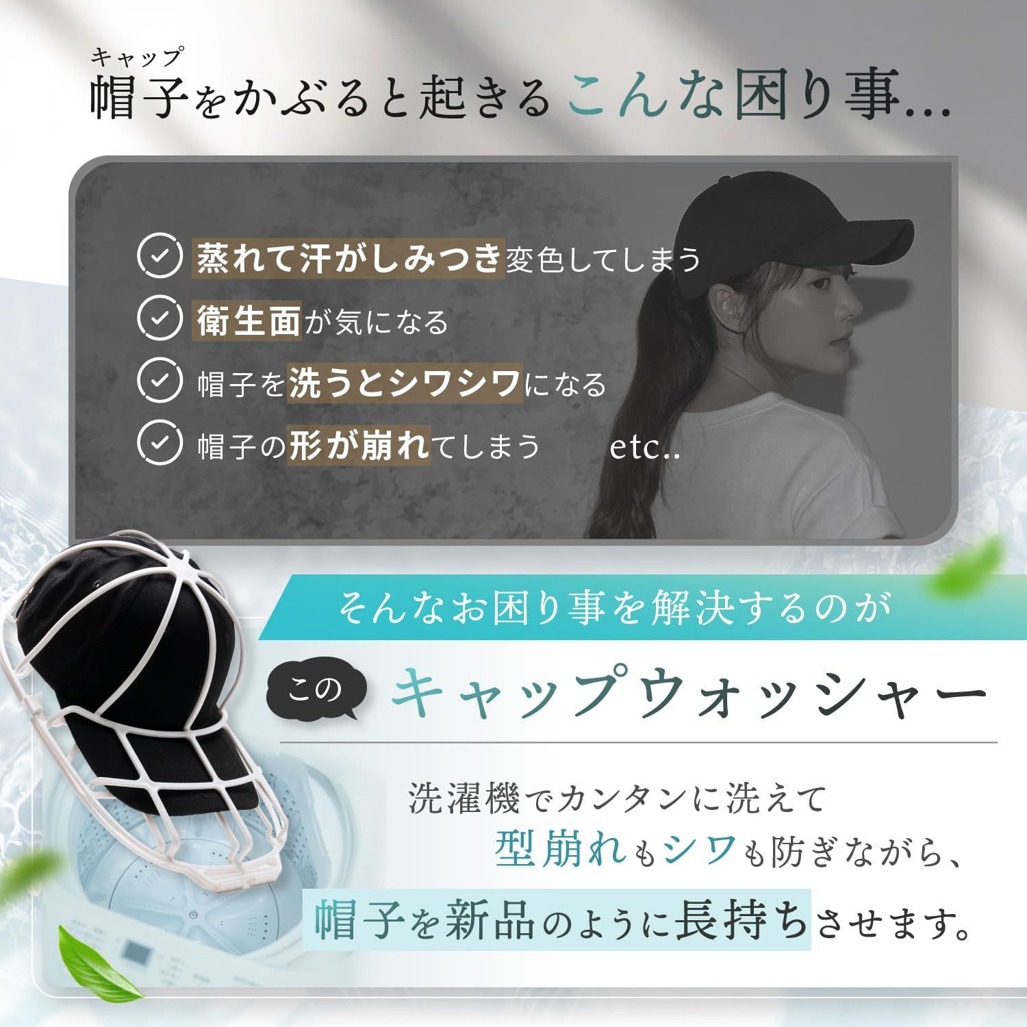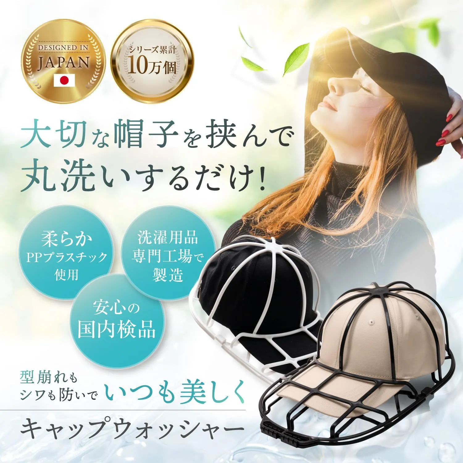 【anan掲載モデル】 LeLante キャップウォッシャー 帽子 洗濯 型崩れ防止 洗濯機 野球帽ウォッシャー 大人用 子供用 収納 吊り下げ収納 (ブラック)