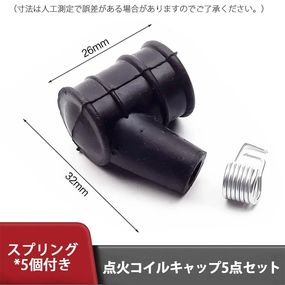 【セット内容】点火コイルキャップ5点セット(スプリング*5個付き)、サイズ:約26mm×36mm。カラー:ブラック。(寸法は人工測定で誤差がある場合がありますのでご了承ください。)