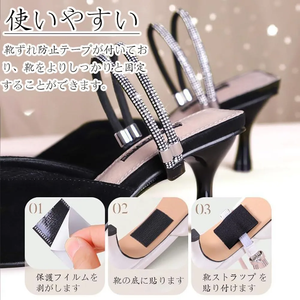 シューズストラップ シューズアクセサリー シューズストラップ ハイヒールストラップ 靴脱げ防止レディース 靴 靴ずれ防止テープ くつずれ防止テープ (ブラック) シューズクリップ シューズバンド ストラップ パンプス 2way使用可能 Moeagel