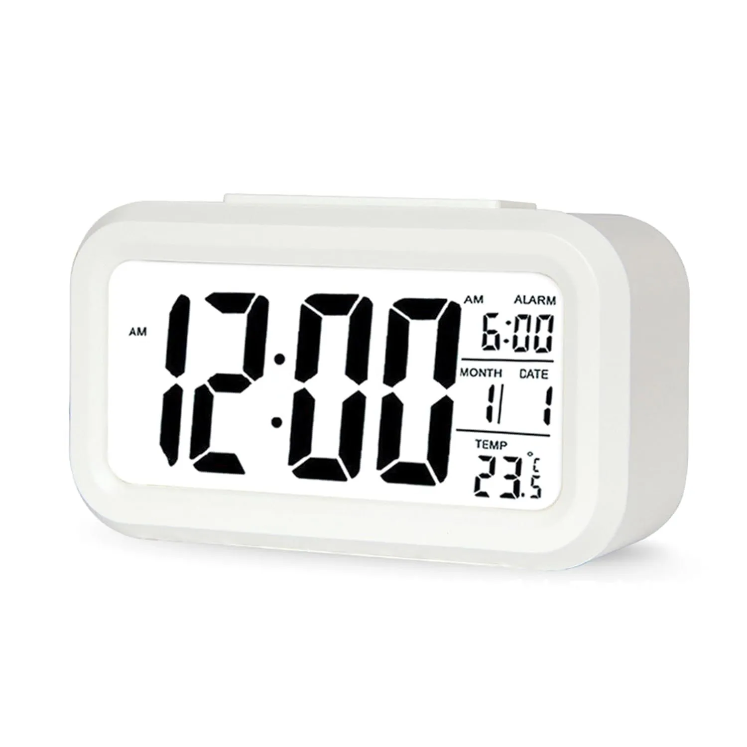 目覚まし時計 置時計 おしゃれ デジタル ライト 時計 見やすい シンプル 温度計 ホワイト 多機能