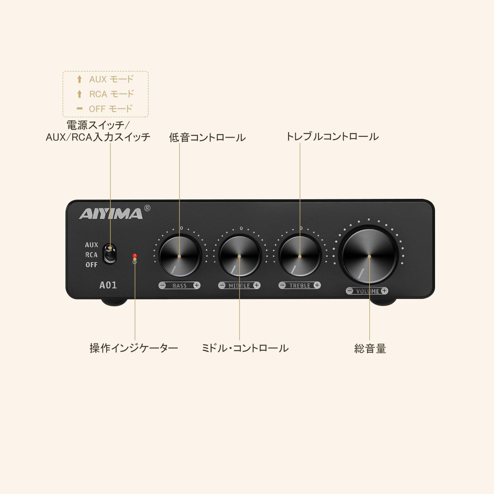 1.AIYIMA A01は、2.0/2.1chのベーシックなアンプです。 本製品は、TPA3116*2+NE5532*3チップを使用し、シンプルな入力と洗練されたデザインのデスクトップ型ミニアンプです。 オーディオ好きにはたまらない一品です。
