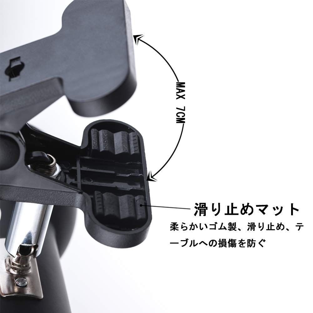 【強力なクリップ】滑り止めゴムパッド付きの強力なクリップで最大7CMまで挟むことができ、接触面に傷付けることなく挟む必要があるものを簡単に固定することができます。