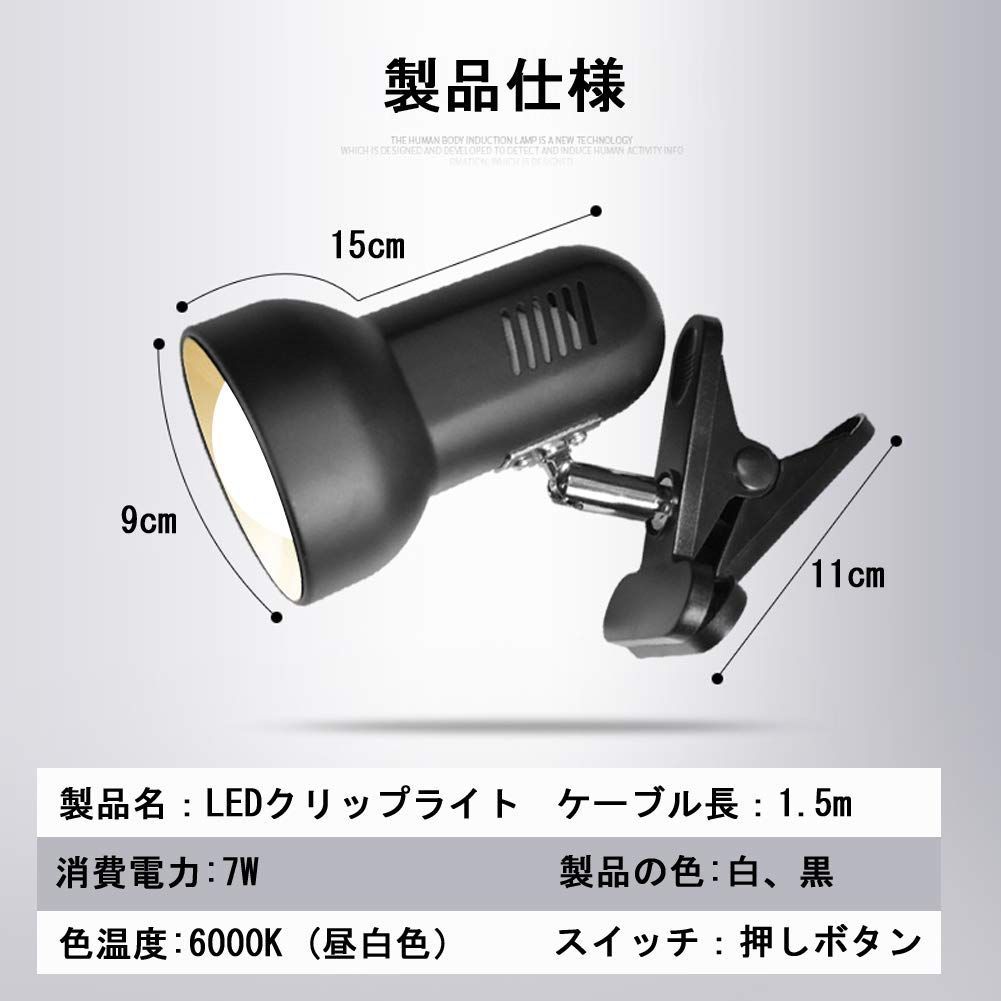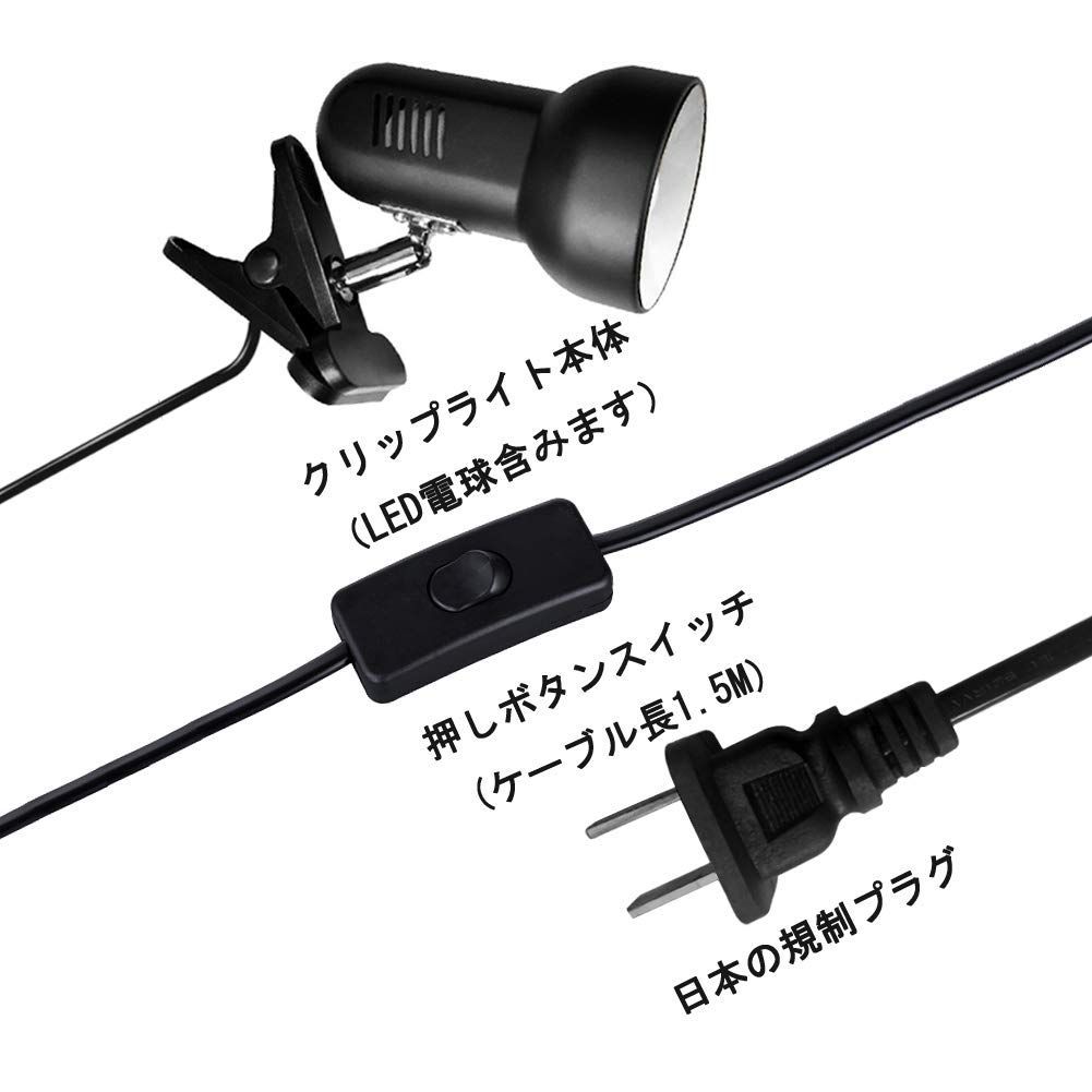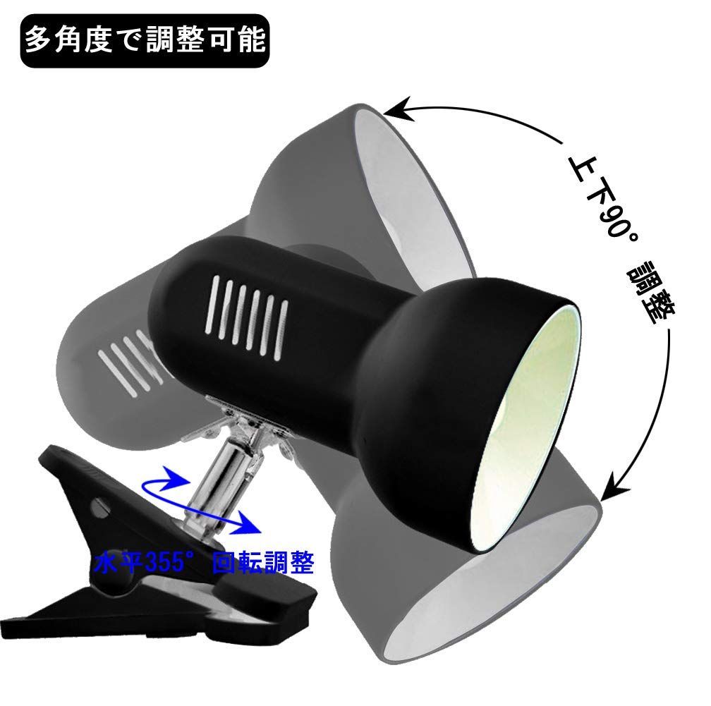 LEDクリップライト デスクランプ 電気スタンド 作業ライト 卓上ライト 高輝度 マルチアングル調整可能 滑り止めマット付き 約360度回転 省エネ PC作業・仕事・寝室・卓上・読書・勉強・オフィスなどに適用 LED電球付き (ブラック)