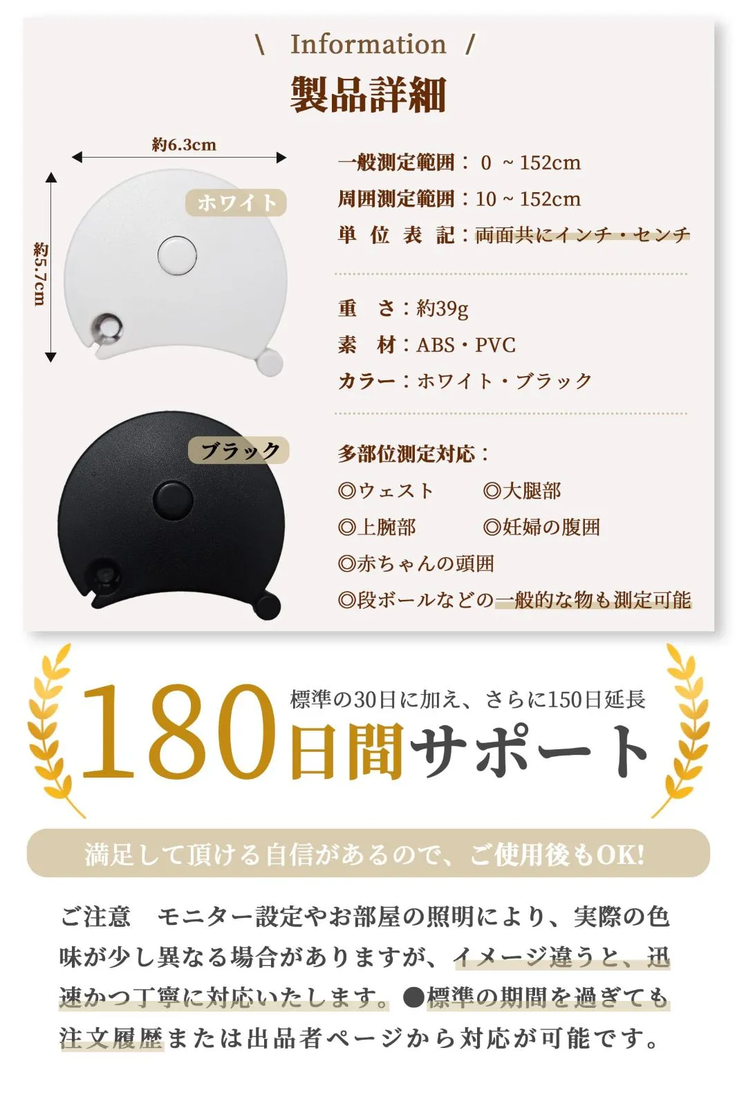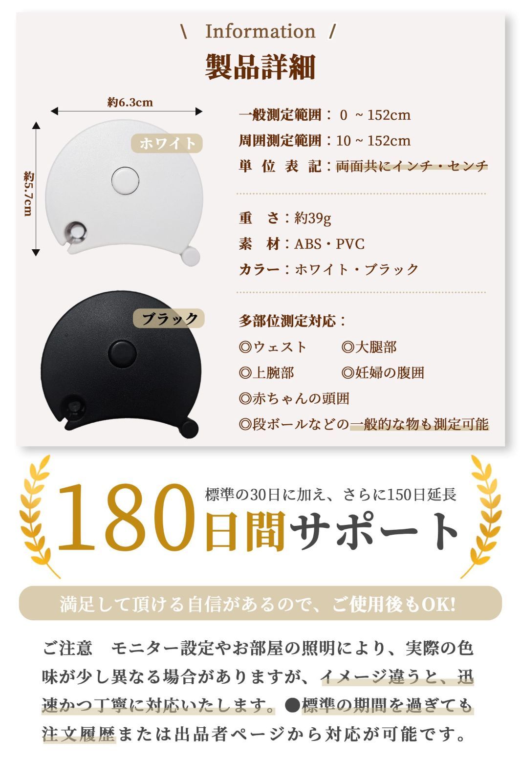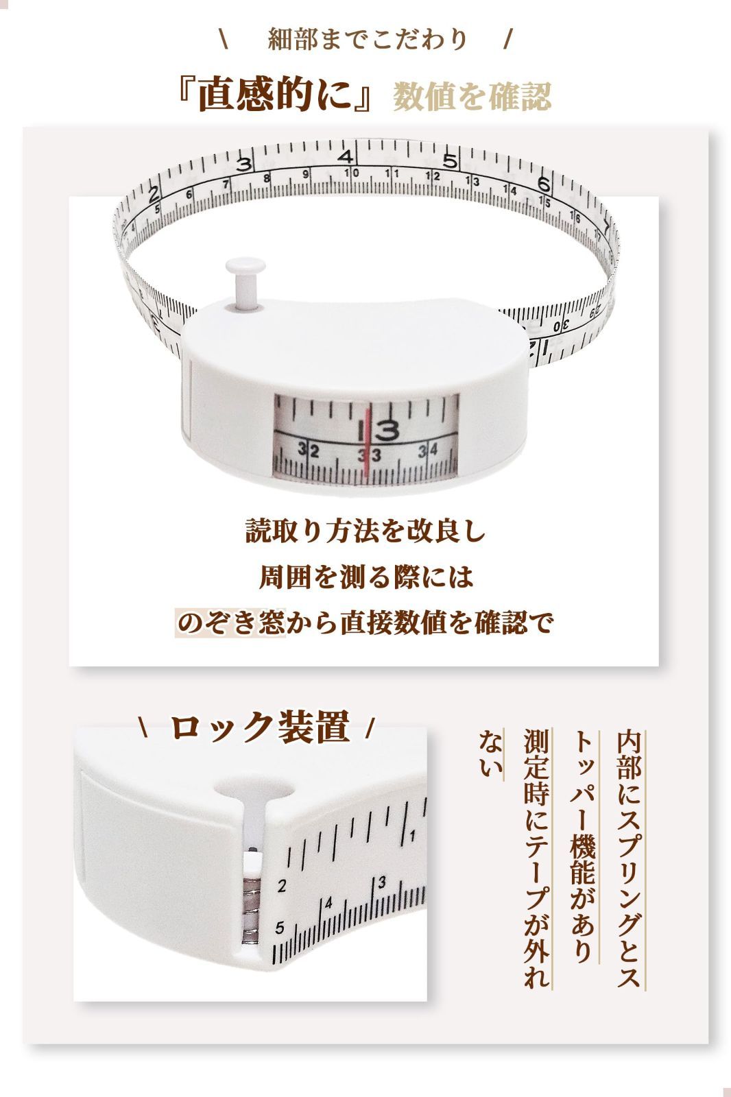 【片手操作・2WAY・2024新登場】周囲測定テープ ウエスト 腹囲 メジャー 裁縫 150センチ インチ 胸囲 身体測定 (ブラック)
