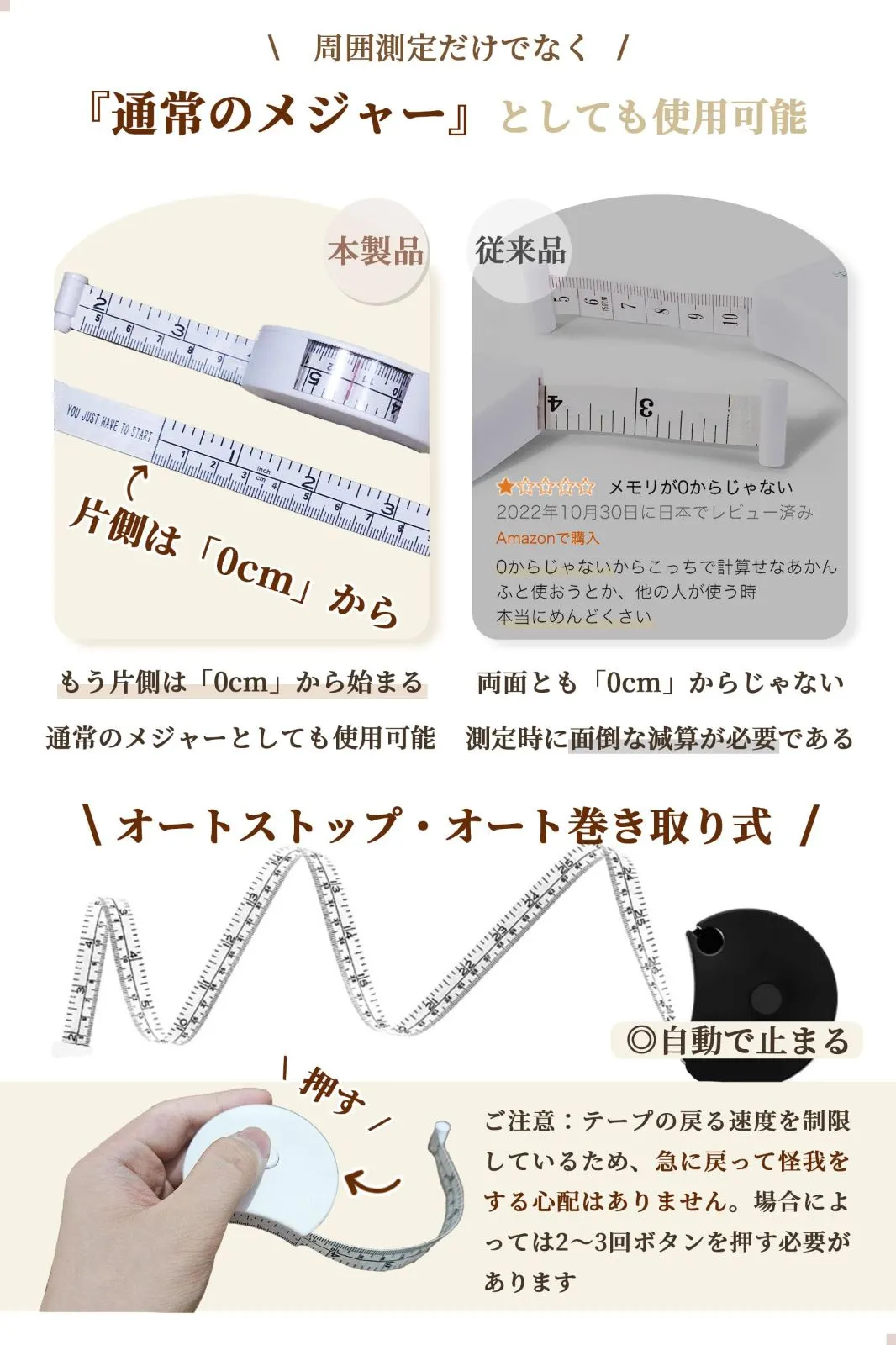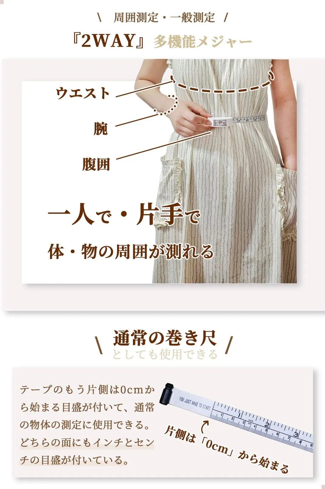 【2WAY・多機能メジャー】ウエスト・腹囲・腕・物の周囲を測定することができるだけでなく、通常の巻き尺としても使用できます