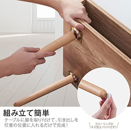【パッド付き】床の上で滑ったりしないように、キズが付かないように、パッドついています。脚の下に、パッドを貼り付けて、滑り止め・床キズ防止可能です。