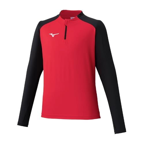 新品 サッカーウェア ソリッドニットシャツ キッズ ハーフジップ 長袖 P2MCC180 ジュニア チャイニーズレッド/ブラック 160