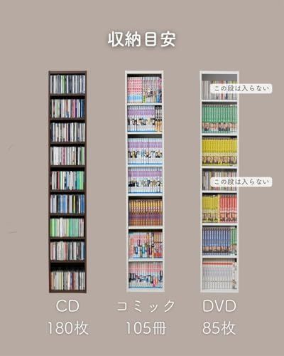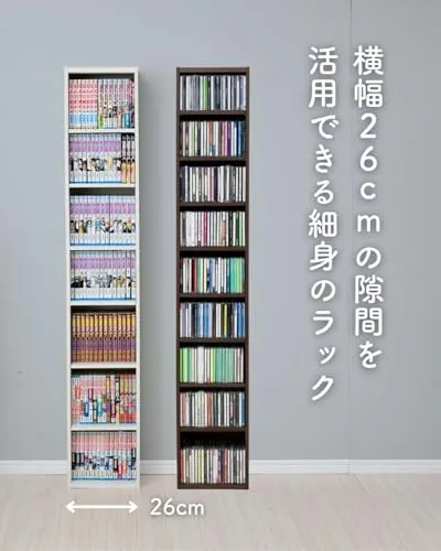 [山善] 隙間収納 棚が動かせる 本棚 スリムラック 幅26×奥行17×高さ150cm (収納目安CD180枚、コミック105冊、DVD85枚) ウォルナット(木目柄) CCDCR-2615(WL)R