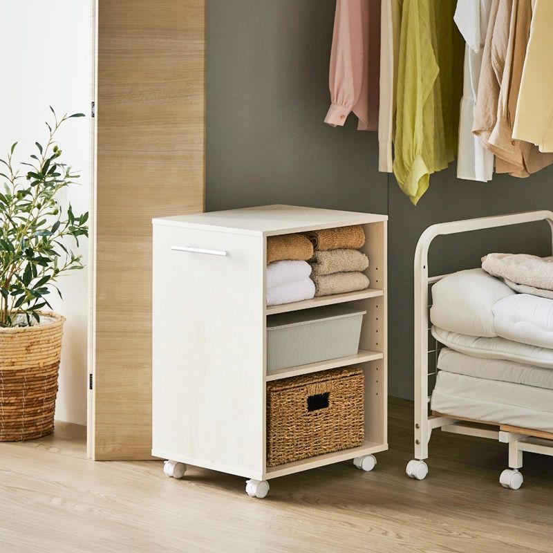 押入れやクローゼットの他、テーブルの下や家具のすき間などにぴったりな収納ラック。キャスター付きなので、小物を収納したままでもスムーズに引き出せます。幅は3サイズ(19cm/25cm/38cm)から選べ、雑誌や日用品、掃除グッズなどをきれいに整理可能。全段移動棚だから、収納物に合わせて高さを調整でき、使い勝手も抜群です。カラーはどんなインテリアにも自然に溶け込む、木目調のライトナチュラル。リビングや寝室はもちろん、キッチン・ランドリー・トイレなど、家の中どこでも活躍する多用途収納です。