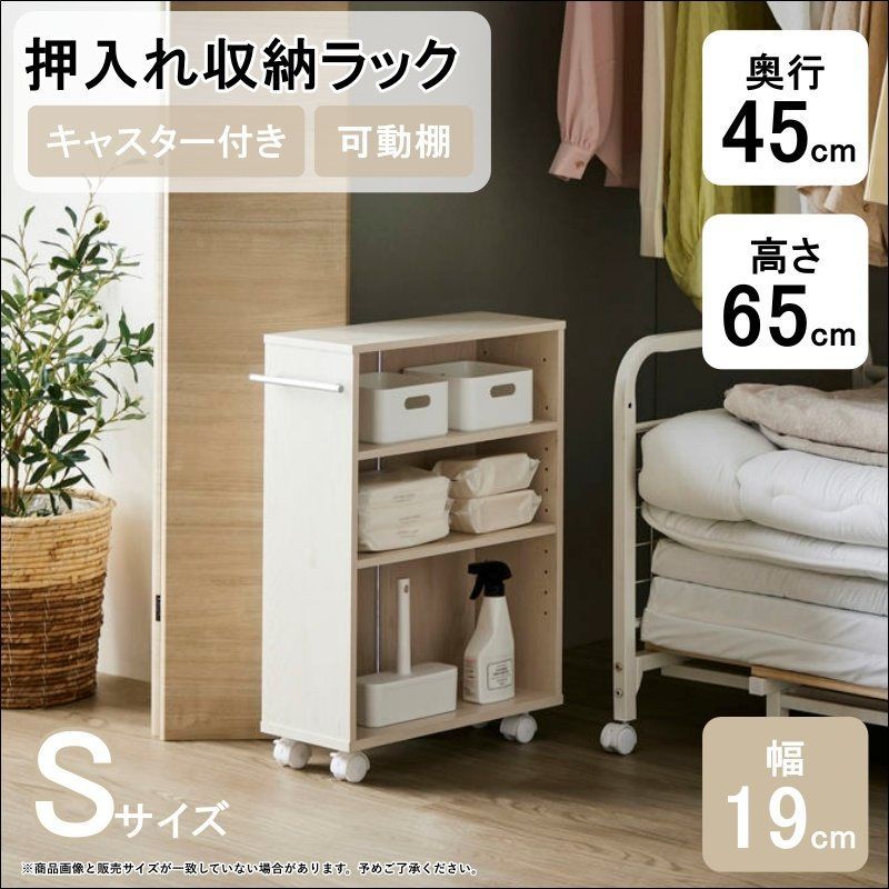 押入れ収納ラック Sサイズ IW-24 幅18.8cm 奥行45.2cm 高さ65cm デッドスペース収納 キャスター付き 可動棚 ライトナチュラル 送料無料 [8442]