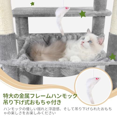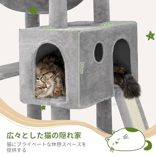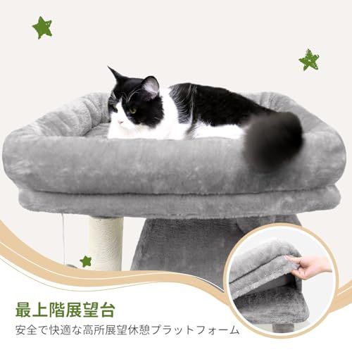 猫の自然な爪とぎ本能を刺激:この猫タワーには、傾斜したサイザル麻の爪とぎボードと複数の天然麻紐の猫の爪とぎポスト付いています。ソファやカーテンなどの家具へのダメージを軽減しながら、猫が爪とぎを楽しめます。