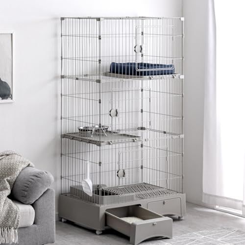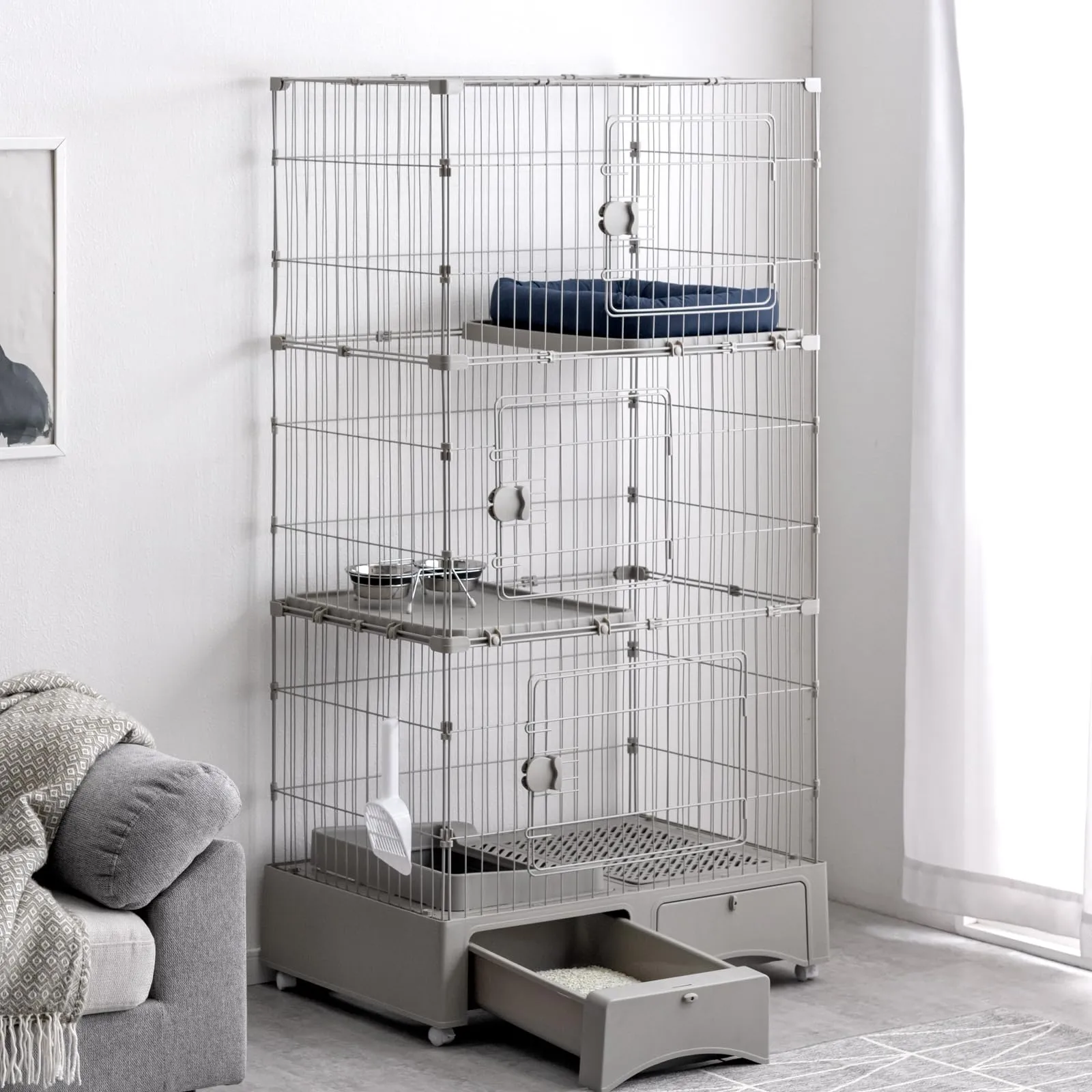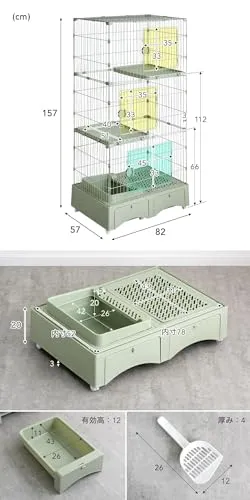 タンスのゲン 猫ゲージ 3段 幅82? 高さ157? トイレ付き キャスター付 丸洗いOK キャットケージ 引き出し 収納 52800019(90280)/