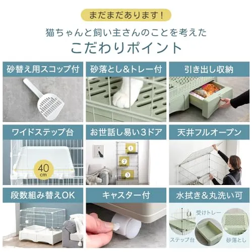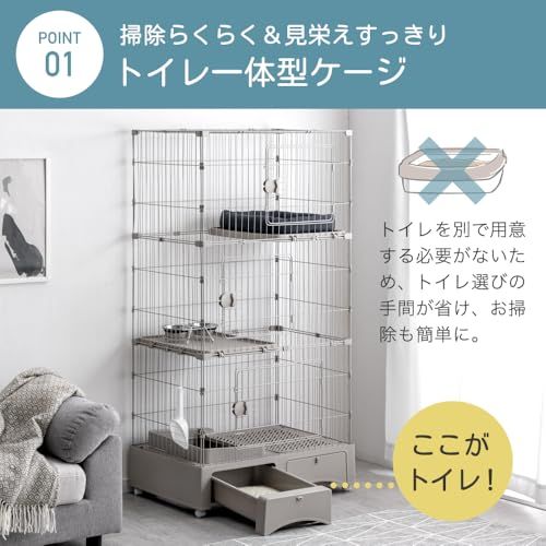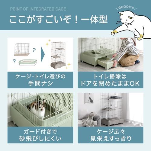 【スタッフのおすすめポイント】 ・ケージとトイレが一度に揃う! トイレ一体型キャットケージ ・扉を閉めたまま砂替え/お掃除OK ・ガード付きで砂飛びしにくい ・すっきり片付く引き出し収納 ・ベッドも置けるワイドステップ台 ・お世話しやすい3ドアフルオープン天井 ・成長に合わせて選べる段数 ・移動に便利なキャスター付き ・おしゃれなワントーンデザイン