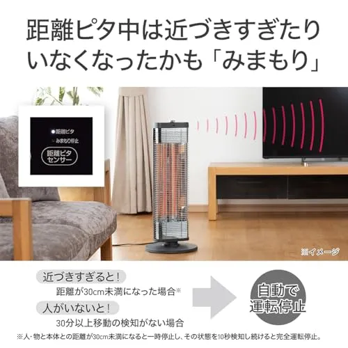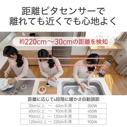 コイズミ 遠赤外線 カーボンヒーター 300/450/700/900W 距離ピタセンサー 自動首振り タイマー付き グレー KKH-0954/H/