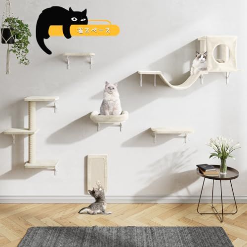 DoubleTT キャットウォーク 6つセット 猫用 キャットステップ 壁掛け式 DIY キャットタワー 猫家具 猫棚 猫ハウス ハンモック はしご 吊り橋 爪とぎポール スクラッチャー キャットツリー 猫用ステップ ベッド 階段 クライミングシェルフ サイ/