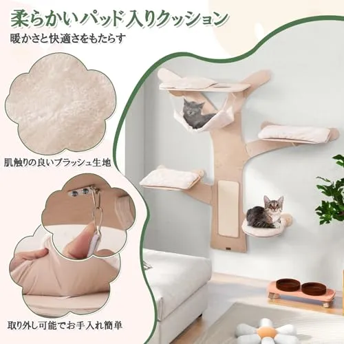 【快適性】ソフトクッションが付いており、肌触りの良いプラッシュ生地で覆われ、柔らかいスポンジで詰め込まれています。ねこちゃんに最高の休息体験を提供します。クッションは取り外し可能で、洗濯もしやすいので、清潔に保つことができます。