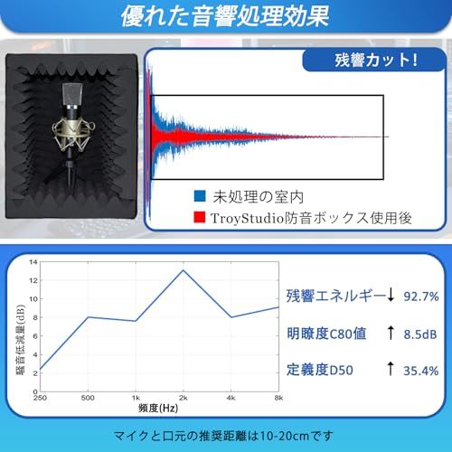 【音響処理】: TroyStudioマイクアイソレーションシールドの内部表面全体には、高さ5 cmの高密度音響エッグクレートフォー?で処理されています。;