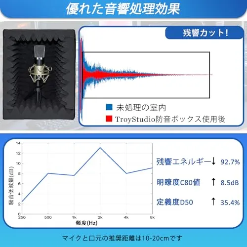 【音響性能】: 音響の明瞭度を大きく上げ、ルームカラレーションからレコーディングを守りドライサウンドを作ります