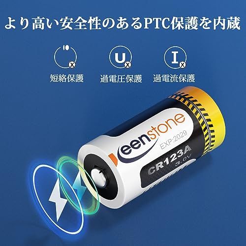 【安全性】PTC保護、UL、CE、ROHS認証。バッテリーの過熱や過電流を防ぐためのPTC保護(圧力、温度、電流)を内蔵しています。UL、CE、ROHS認証はKeenstone CR123A非充電式電池の優れた品質と安全性を証明します。