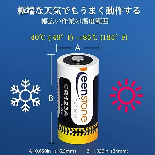 【耐寒性?耐熱性】Keenstone CR123Aリチウムは、圧力なしで-40C~ 85Cで動作可能、極端な天気でももうまく動作します。