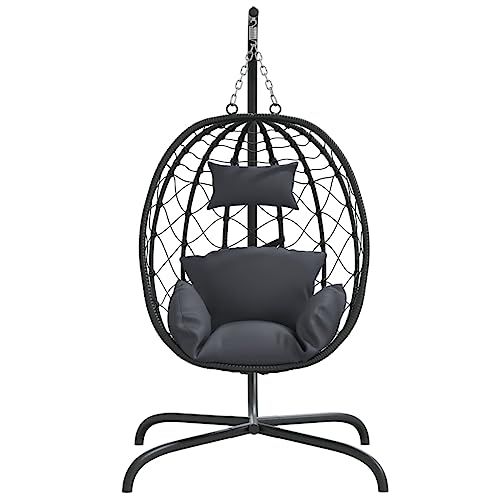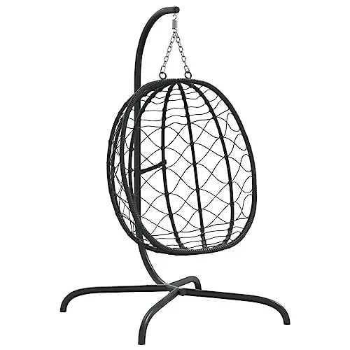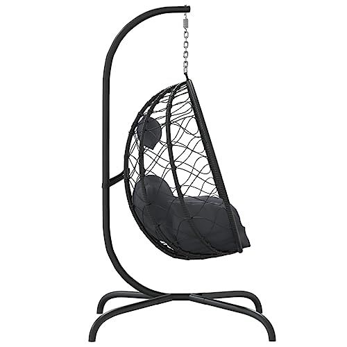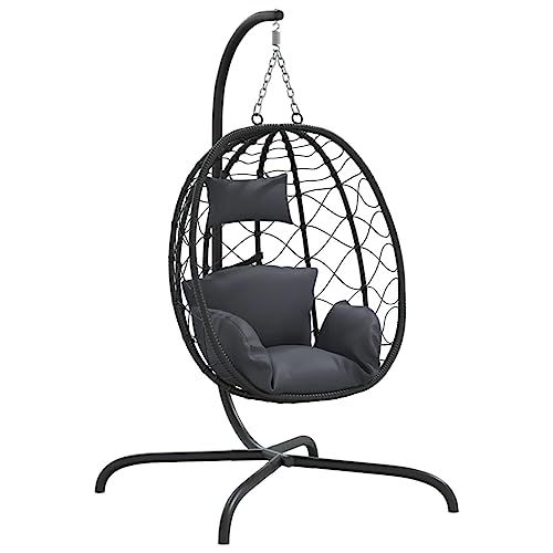 vidaXL ハンギングエッグチェア クッション付き アンスラサイト ポリラタン&スチール★tm