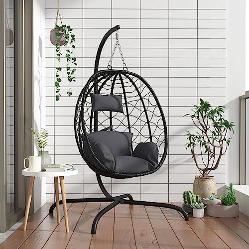 【スイング デザイン: このガーデン エッグ チェアにゆったりと体を揺られながら、ゆったりとくつろげます。