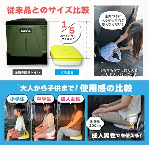 【stoole発:車の座席で使えるトイレ】スツーレから新タイプの 簡易トイレ・車内用携帯トイレが登場しました! 「くるま」の「 おまる 」名付けて「くるまる」です! くるまるは渋滞やアウトドア、車中泊避難時にも車内で使えるので携帯トイレとして車に1台いざという時の備えに。