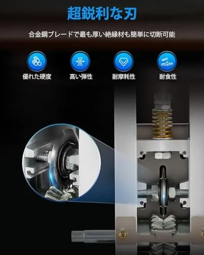 【手動式で簡単に操作】電源不要の手動式ワイヤーストリッパーで、初心者でも簡単に操作可能。電線の皮むき作業がスムーズに進み、コンパクトで持ち運びや収納も非常に便利です。