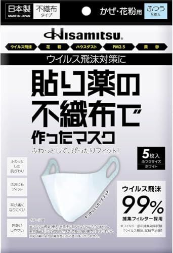久光製薬 貼り薬の不織布で作ったマスク(耳掛けタイプ) ふつうサイズ ホワイト