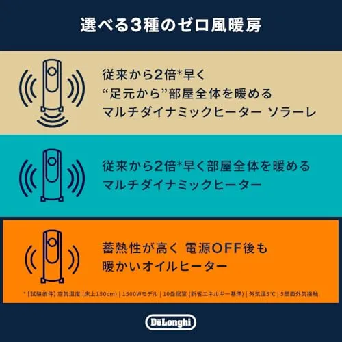 De'Longhi (デロンギ) オイルヒーター ヴェルティカルド RHJ21F1015-BR 電気ヒーター ゼロ風暖房 静音 乾燥しにくい 表面温度約80℃ 燃料補充不要 安全プラグ [10-13畳] [ホワイト×ブラウン] デロンギファミリー登録で5年保/