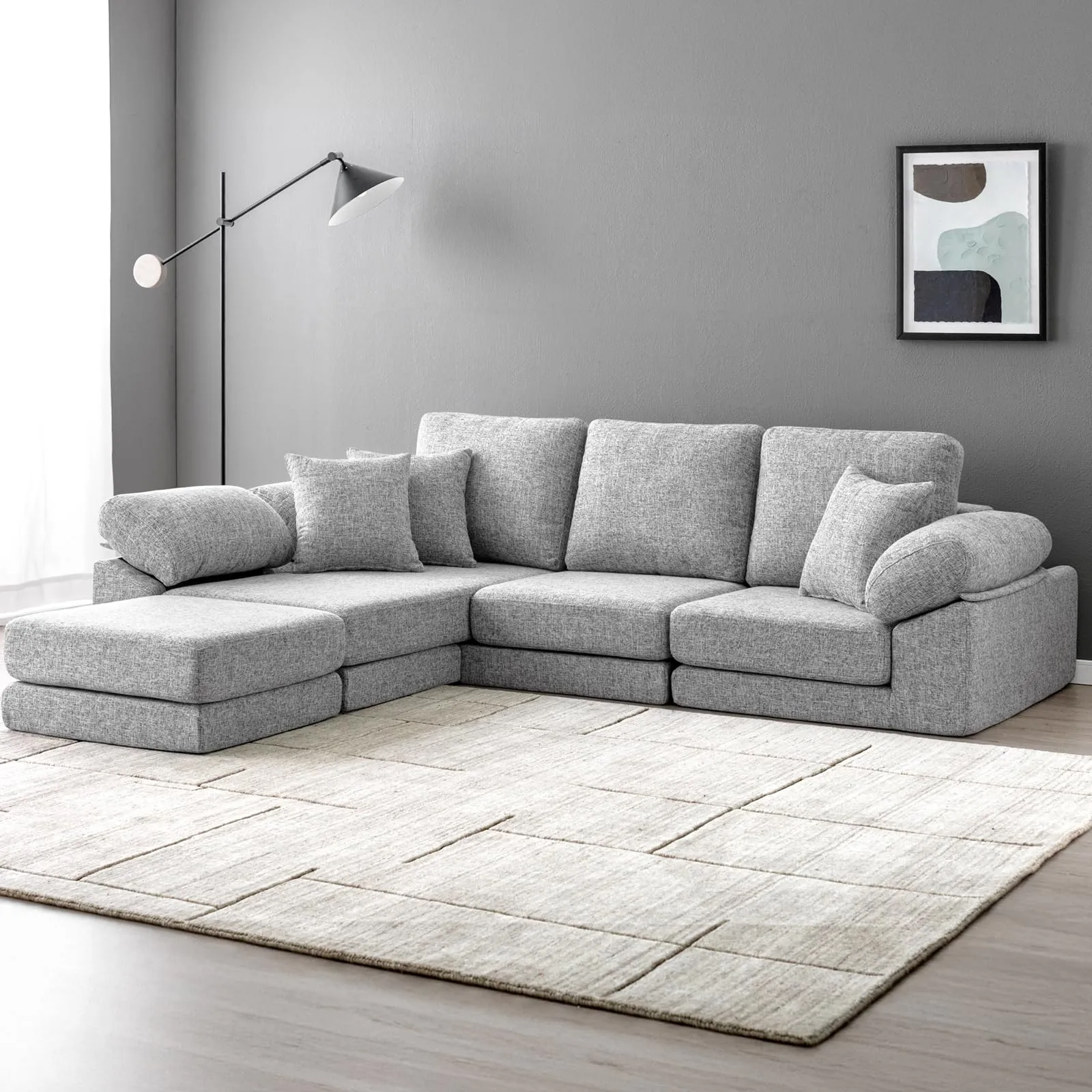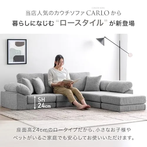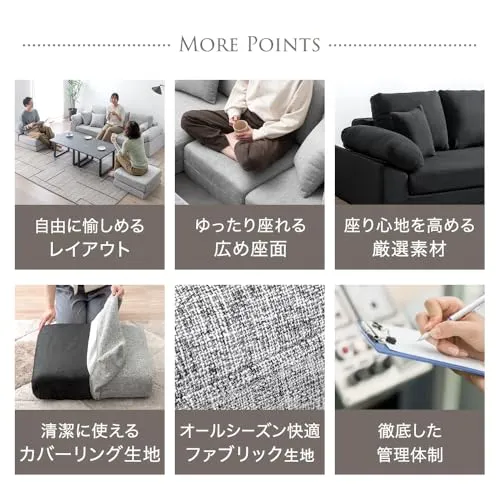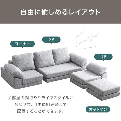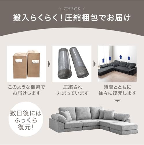 タンスのゲン ソファー 3人掛け【搬入らくらく!圧縮梱包】クッション3個付き 洗える カバー付き カウチ L字 コーナー ソファーセット ファブリック ローソファー 42500125(110417)/