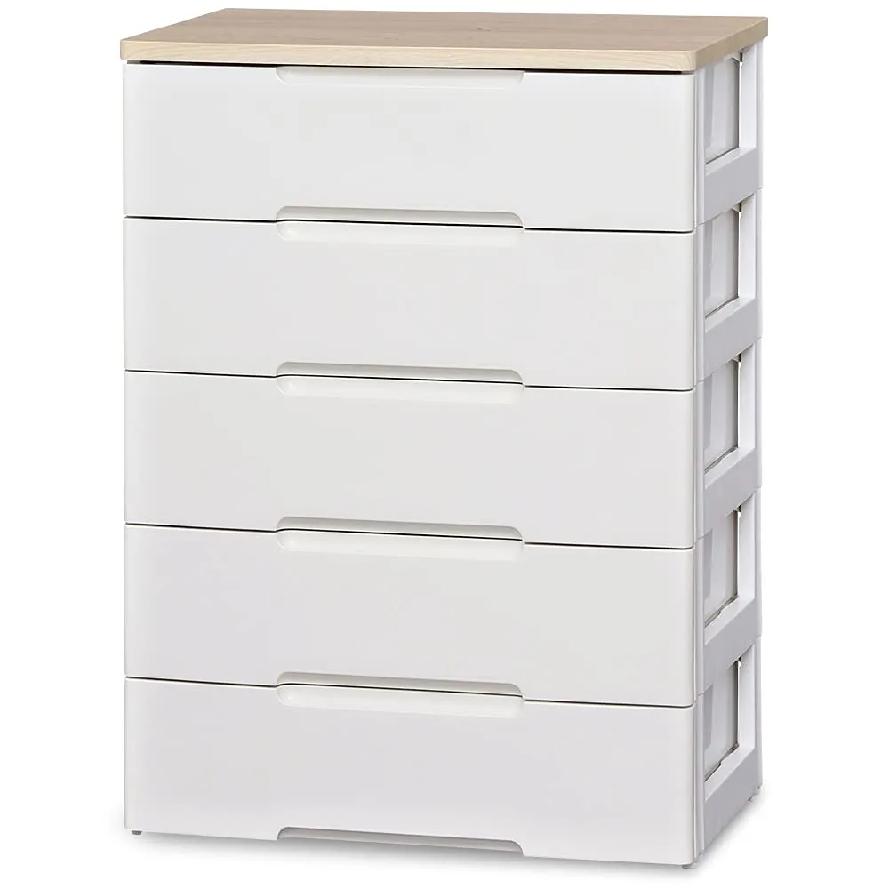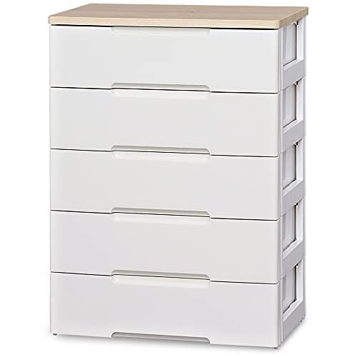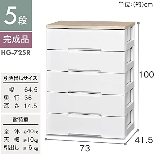 アイリスオーヤマ チェスト ラクラク引出し 木天板 5段 日本製 幅73×奥行41.5×高さ100cm ホワイト/ナチュラル 白 プラスチック HG-725R/