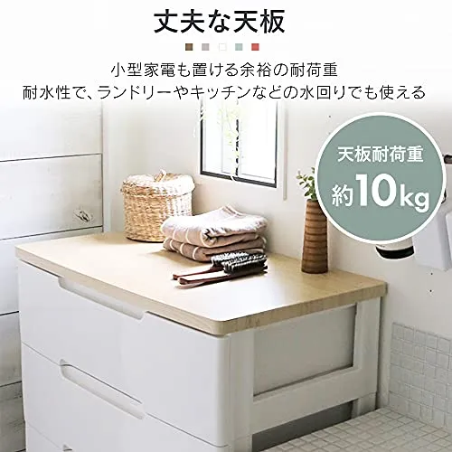【どんな場所でも】プラスチック製の引き出しは中が見えないタイプなので、どんなお部屋にも置きやすい。木の天板がおしゃれで優しい雰囲気。