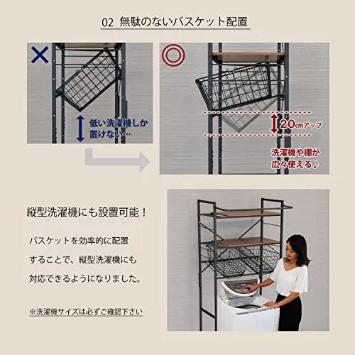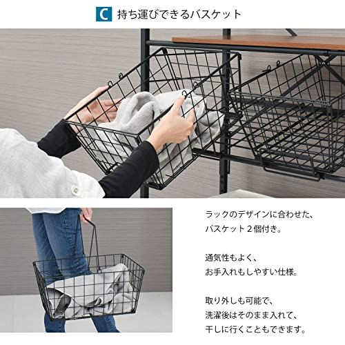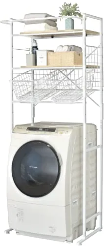 ekans(エカンズ) 棚付きランドリーラック バスケット+棚2段 ホワイト LSH-500W/