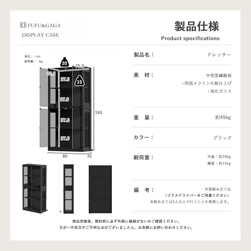【耐荷重15kg4段安全安心な構造】各棚は耐荷重15kgまで対応し、重さのあるコレクターズアイテムや書籍もしっかり収納。背面には壁固定用の金具付きで、転倒リスクを軽減し、小さなお子様がいるご家庭でも安心してお使いいただけます。