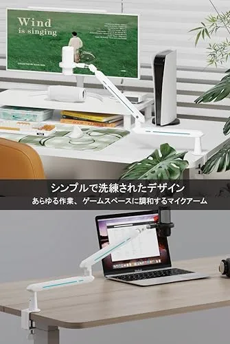 ケーブル収納:隠されたケーブルカバーがマイクアームに内蔵し、配線整理はより便利になります。ケーブルをきちんと整えられ、作業スペースの整理整頓に役立ち、見た目もすっきりとしています。