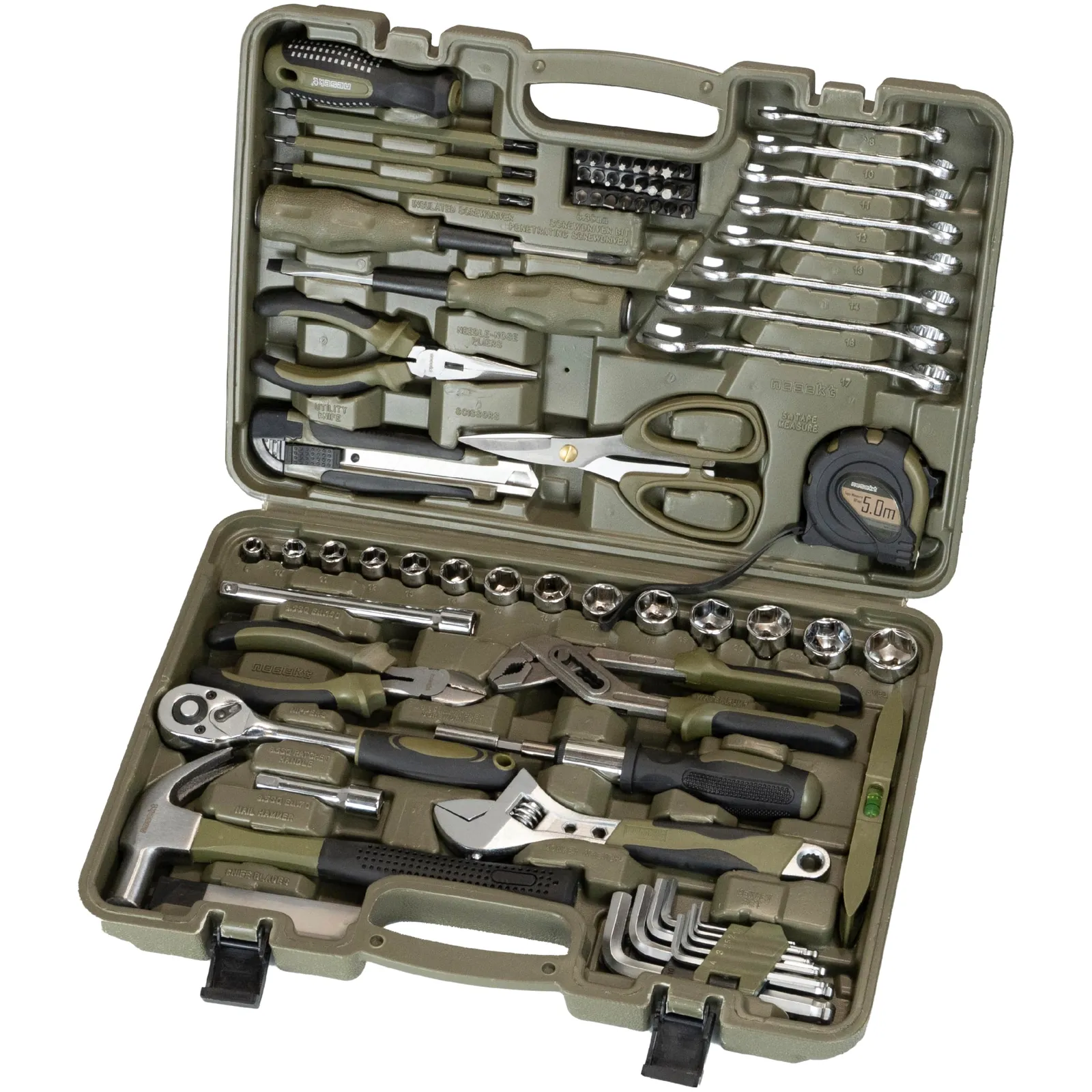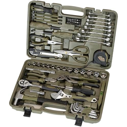【自動車の基本整備にも対応する万能ツールセット】 一般家庭における日常的なメンテナンス、家具の組立や機械などの修理、DIYに加え専用工具を要しない自動車整備などにも対応した充実のセット内容です。 使用頻度の高い基本工具であるはさみ、ニッパー、カッターナイフ、メジャー、水平器もしっかりとケースに収めています。 自動車やオートバイ、自転車などの基本整備や車載工具としても最適です。 錆びにくいクロームメッキ仕上げです。