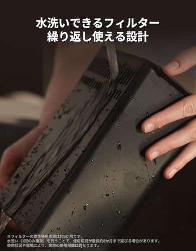 【静音設計】 作動音を抑えた設計のため、キッチンやリビングなど生活空間でも使いやすく、夜間や就寝中の使用にも配慮しています。