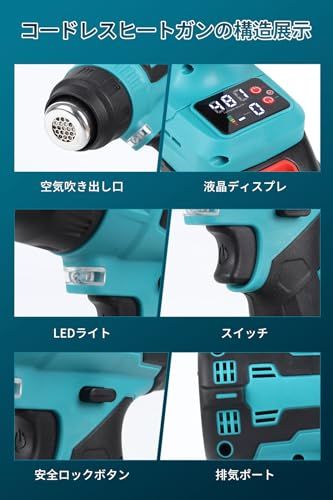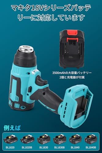 ヒートガン コードレス 18v マキタのバッテリー交換可能 6段風量調整 50?550℃調整 充電式ヒートガン ノズル3個付き (本体 + バッテリ2個)★tm