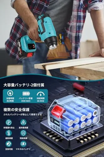 【マキタ18Vバッテリー対応】マキタ18Vリチウムバッテリーで対応可能、BL1830 BL1840 BL1850 BL1860 BL1860B BL1830B BL1850B BL1860B BL1890Bなどが適用します。過熱/過充電/防爆保護、安全で安心して使用できます。