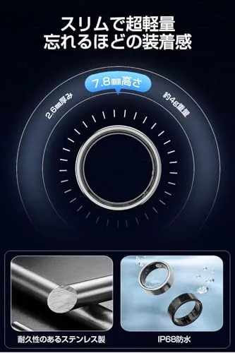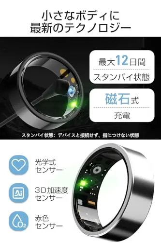 スマートリング 健康管理 【新登場 & 長時間使用可能】 Android/Iphone対応 睡眠管理 スマート指輪 ヘルスケア 睡眠計測 8種類運動モード 3種類データ測定機能 IP68防水USB磁気充電 カメラ制御 小型 超軽量 カロリー 運動距離 歩数計/