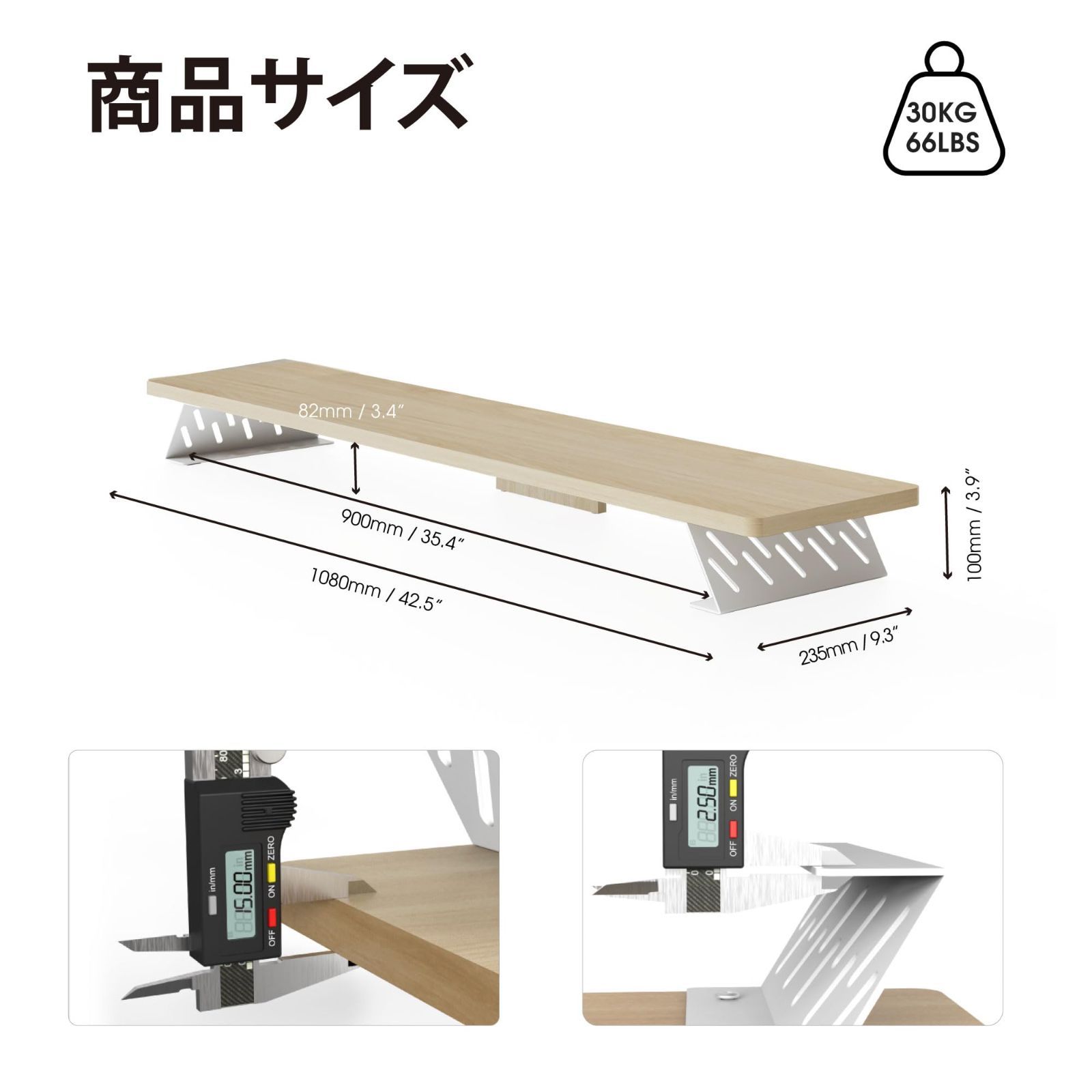 モニター台 卓上 モニタースタンド デスクシェルフ パソコン台 木製 スチール製 Fenge pc 机上台 卓上ラック 机上ラック デスク周り収納 (オーク 108cm)
