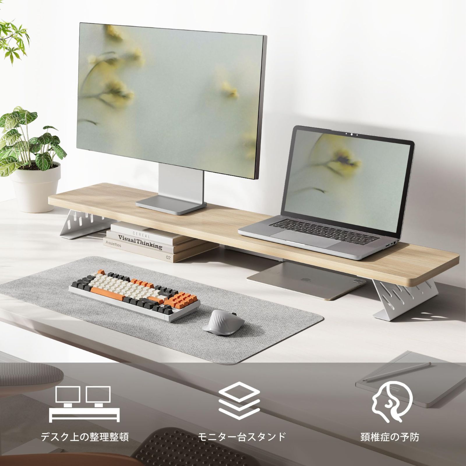 Fenge モニター台 卓上 モニタースタンド デスクシェルフ パソコン台 木製 スチール製 pc 机上台 卓上ラック 机上ラック デスク周り収納 (オーク 108cm)