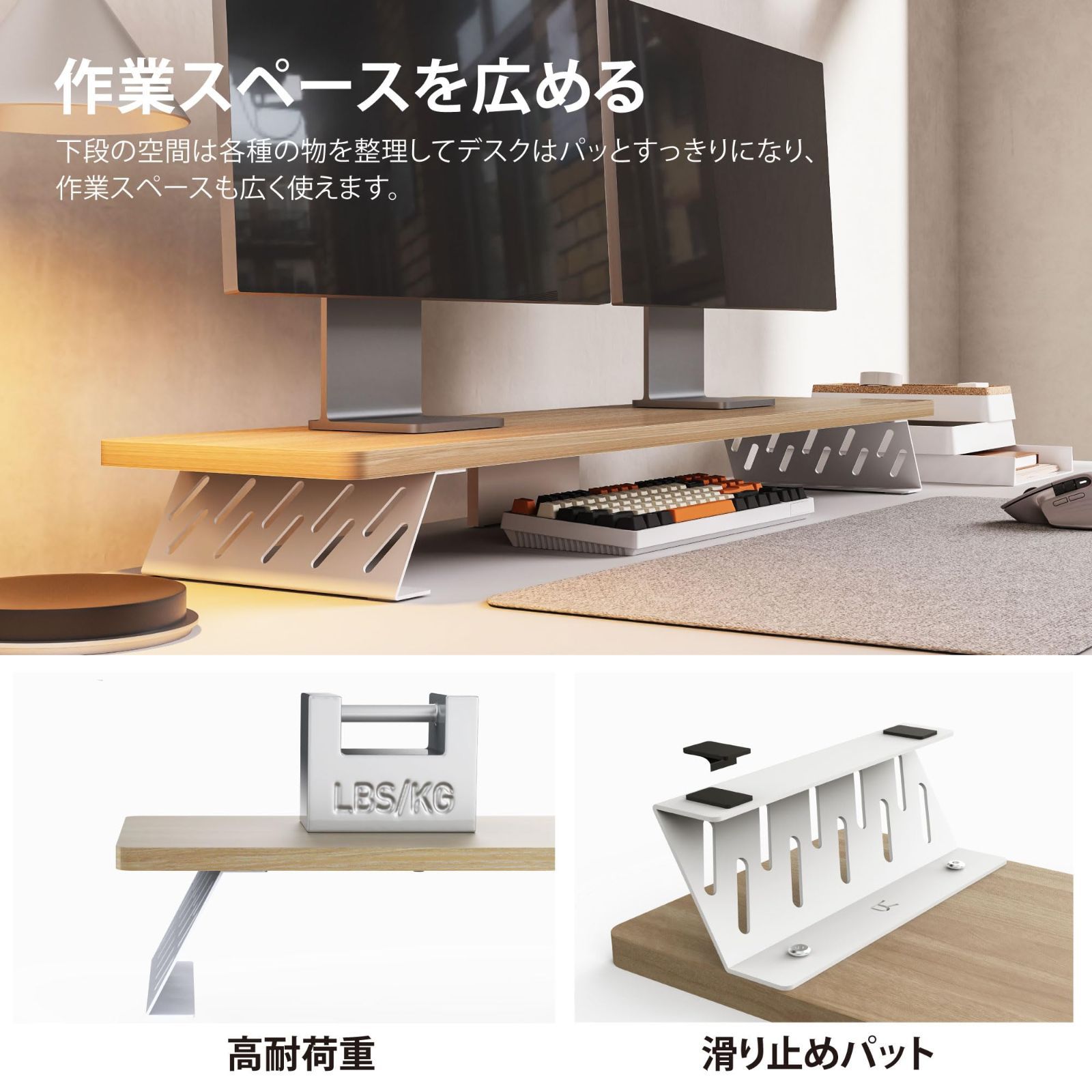 【つくりがしっかりしたデスクシェルフ】モニタースタンドの脚は耐久性の高い3mmスチール製で耐荷重25kgでもしっかりと支えます。天板はメラミン化粧板から作られ、熱や水、汚れに強くてお手入れが便利です。